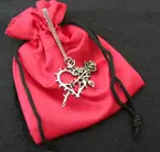 Восхитительная серия подвесок создана из оловянного сплава, украшенного золотым и серебряным напылением, эмалью и кристаллами. Подвески поставляются вместе с цепочкой в красном атласном мешочке, к каждой прилагается листок с описанием на английском языке.