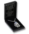 Подвески изготовлены из пьютера — прочного сплава великолепного цвета, сочетающего оттенки серебра и стали — и украшены льдисто-голубыми, небесно-синими и огненно-красными кристаллами Сваровски. Каждое изделие сопровождается описанием связанной с символом легенды и его магического назначения и поставляется в ювелирной коробочке вместе с цепочкой.