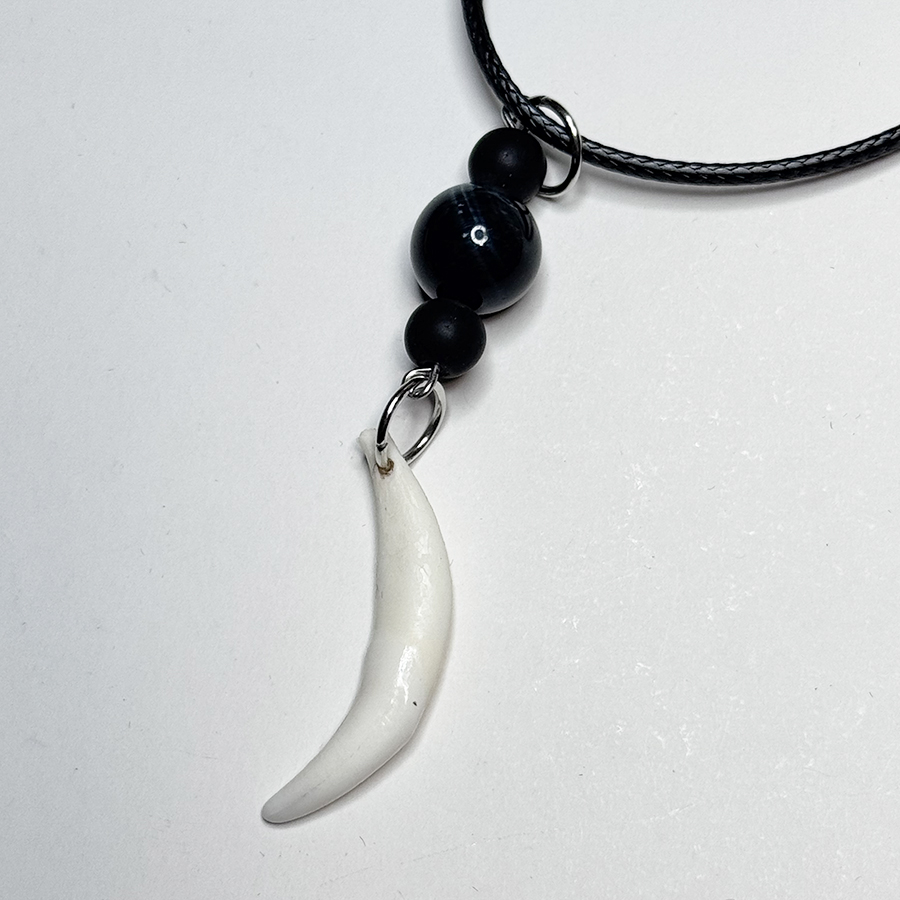 - Материалы:клык лисы, шунгит, соколиный глаз, вощёный шнур